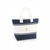 Large capacity. Zippered main compartment. Zippered pouch pocket. Detachable adjustable shoulder strap. Webbing carry handles. Reach certified.